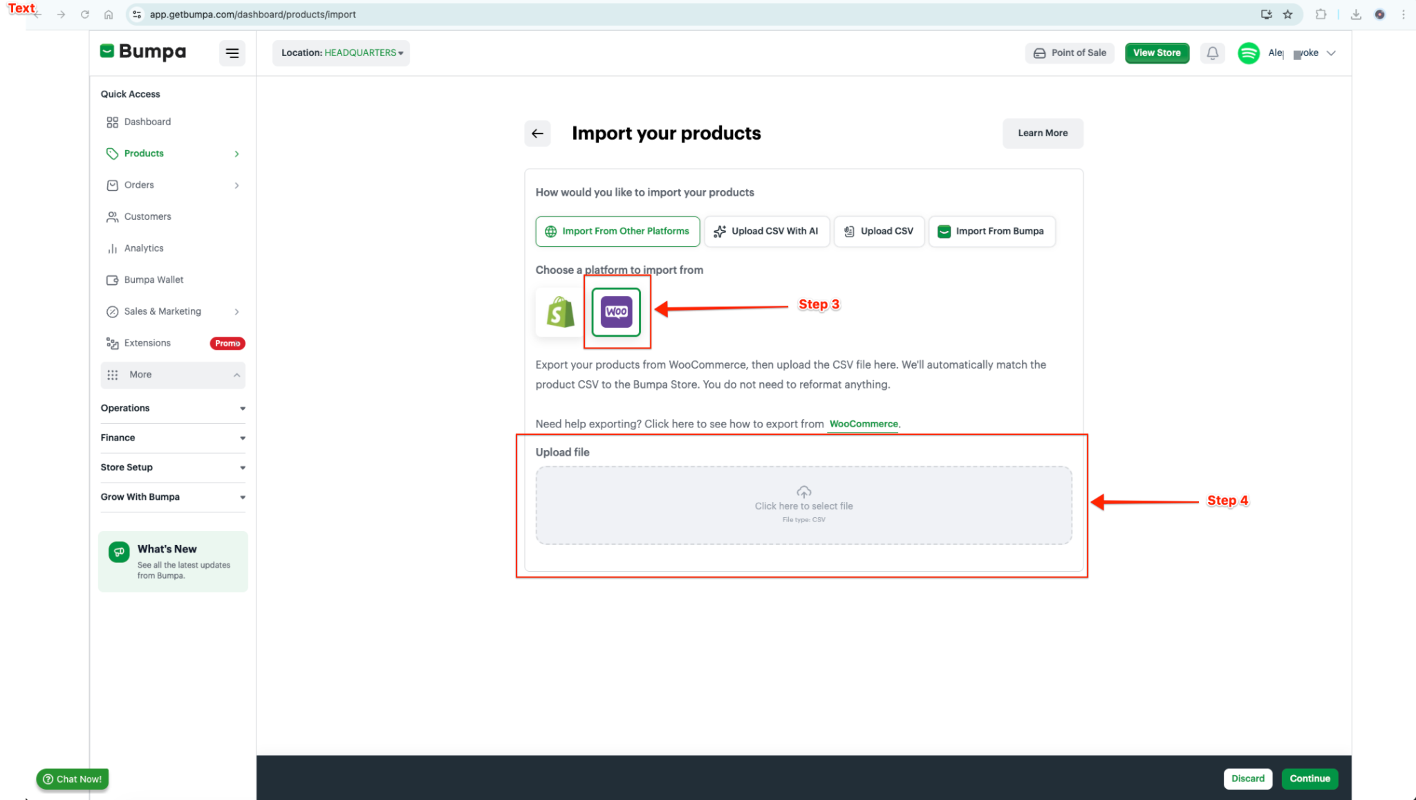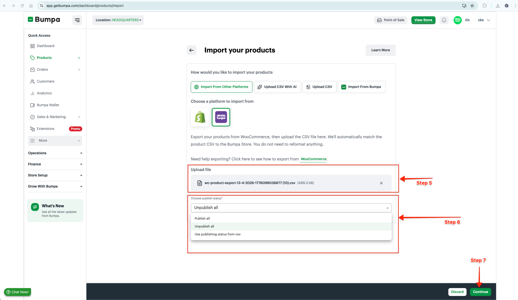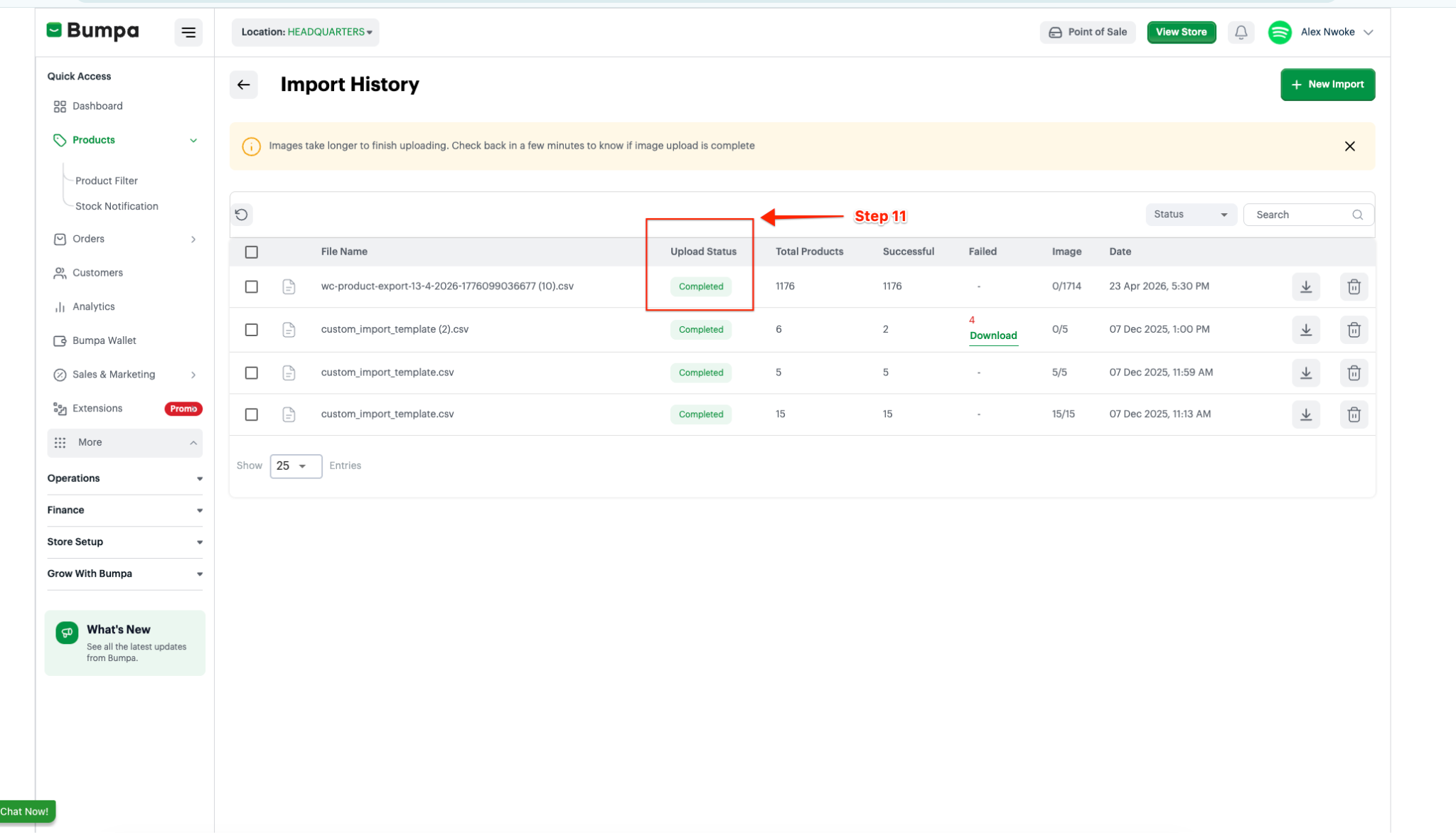 Select the Import button to begin the process of importing new product data into your Bumpa’s inventory.