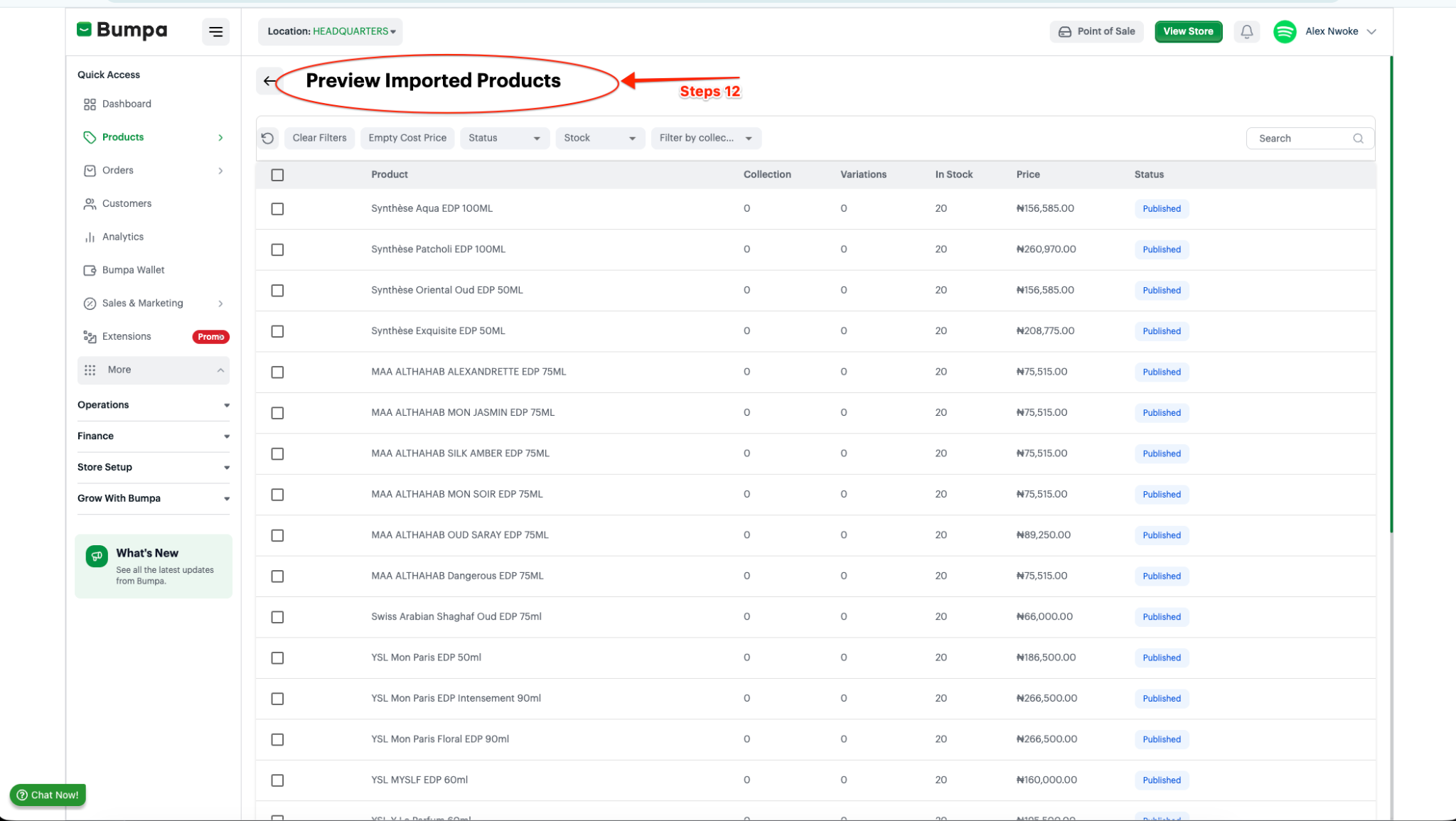 Step 12: you can click on the completed Product status to see a list of the imported product