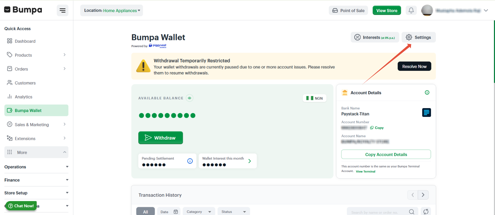 - Access the Bumpa Wallet from your Dashboard